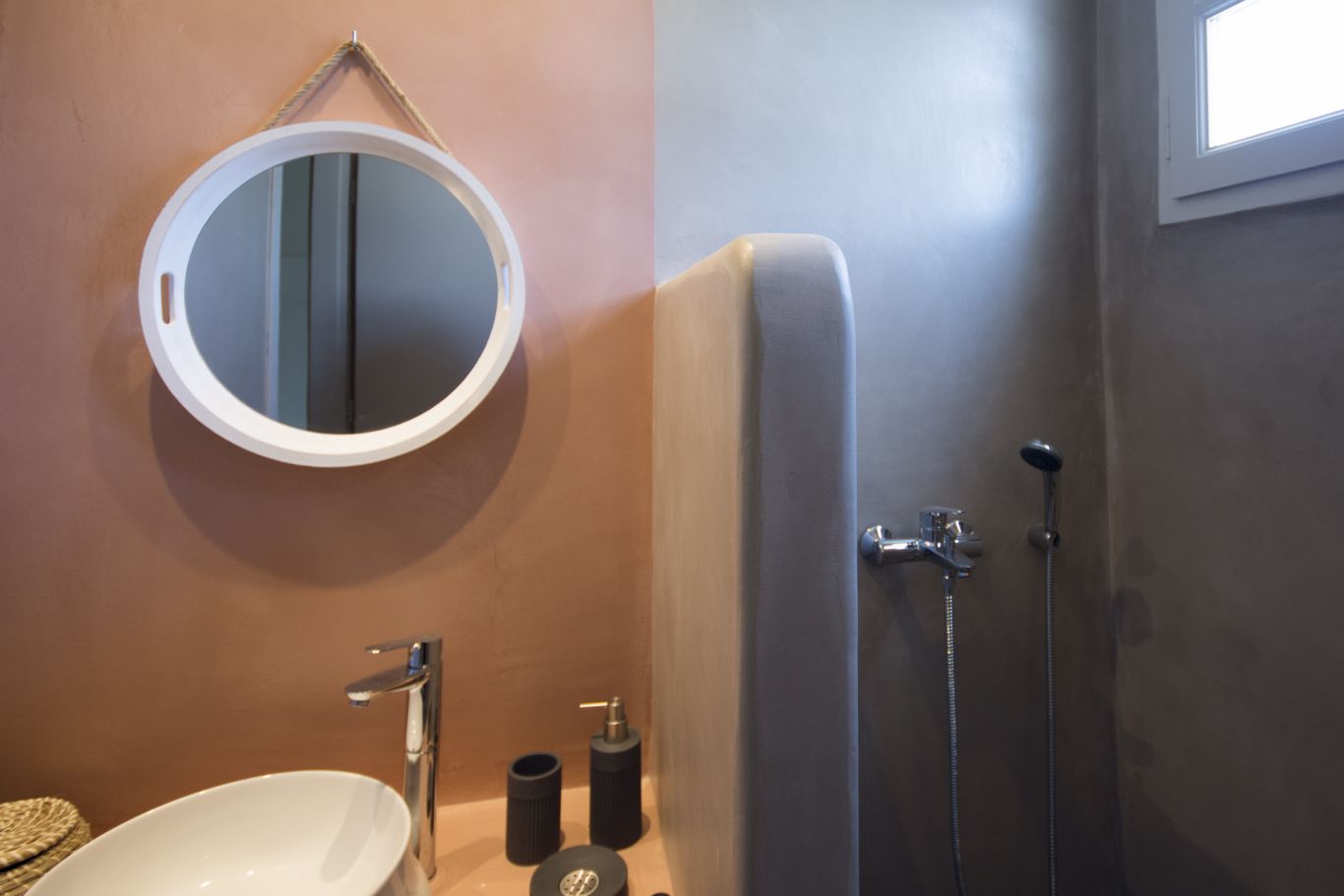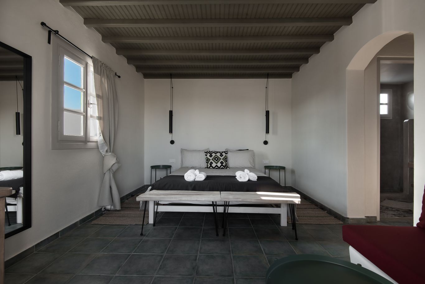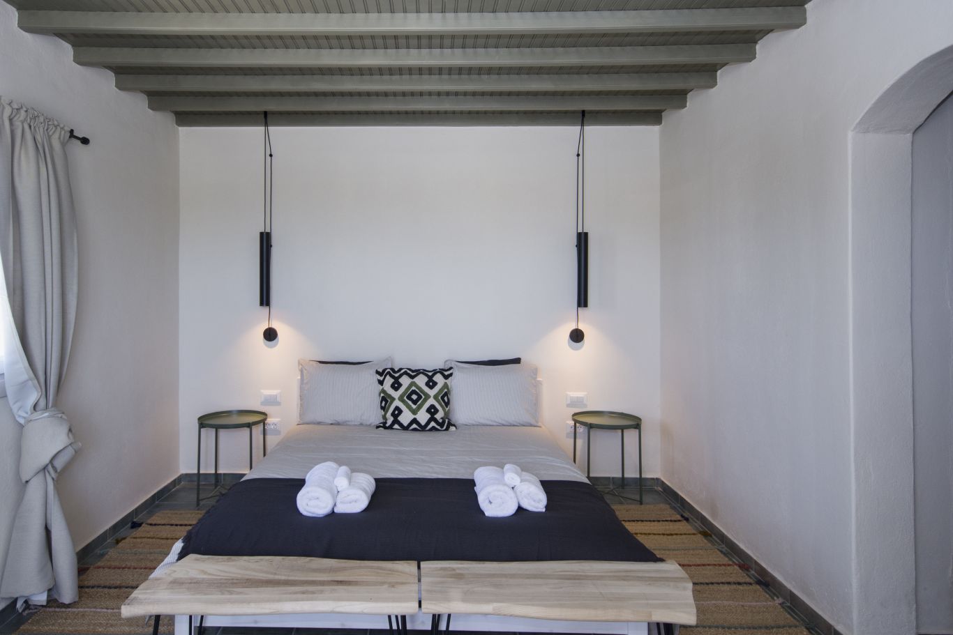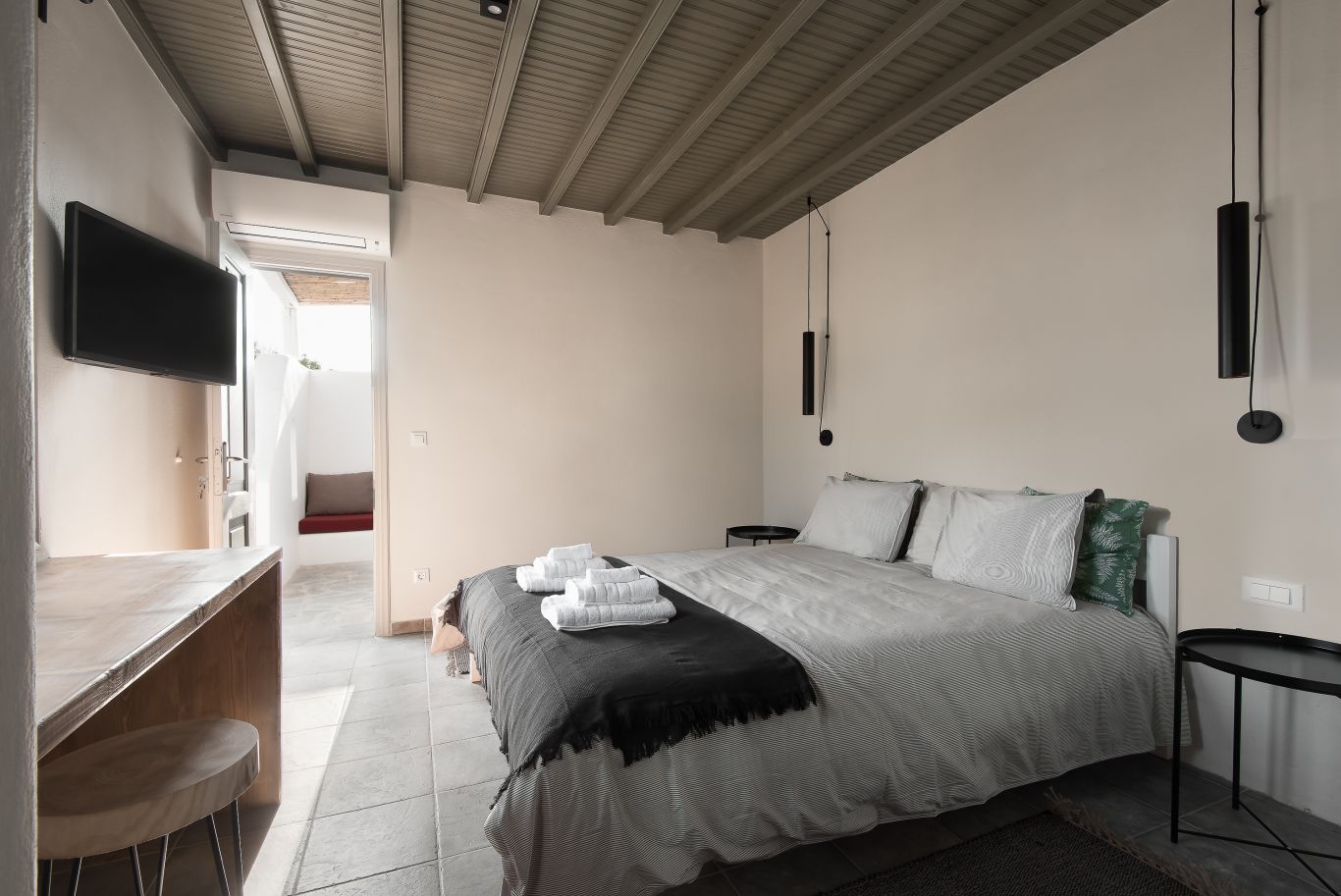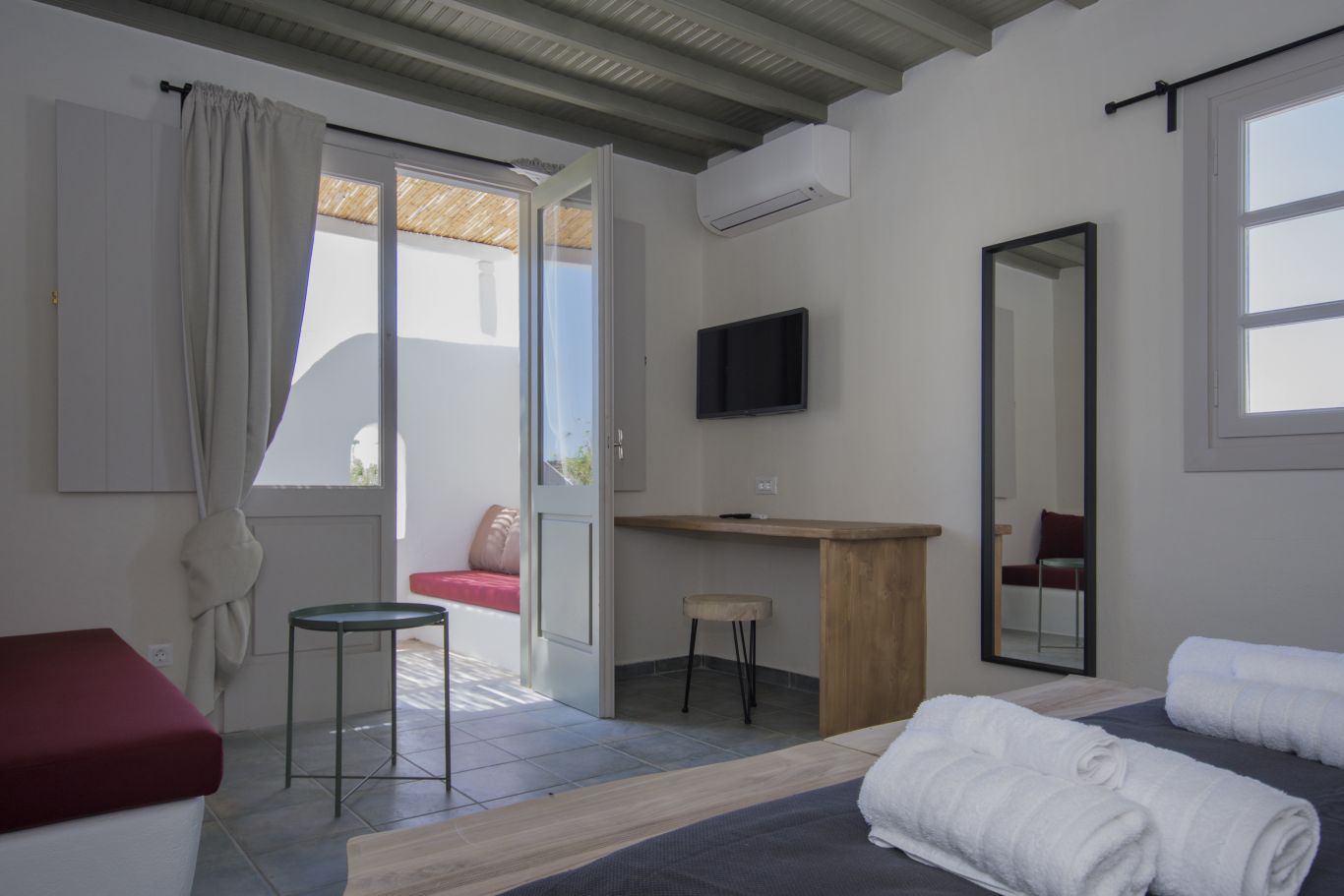 Tavros apartment includes two bedrooms , one with a double bed and o coach and another with double bed, and two bathrooms.