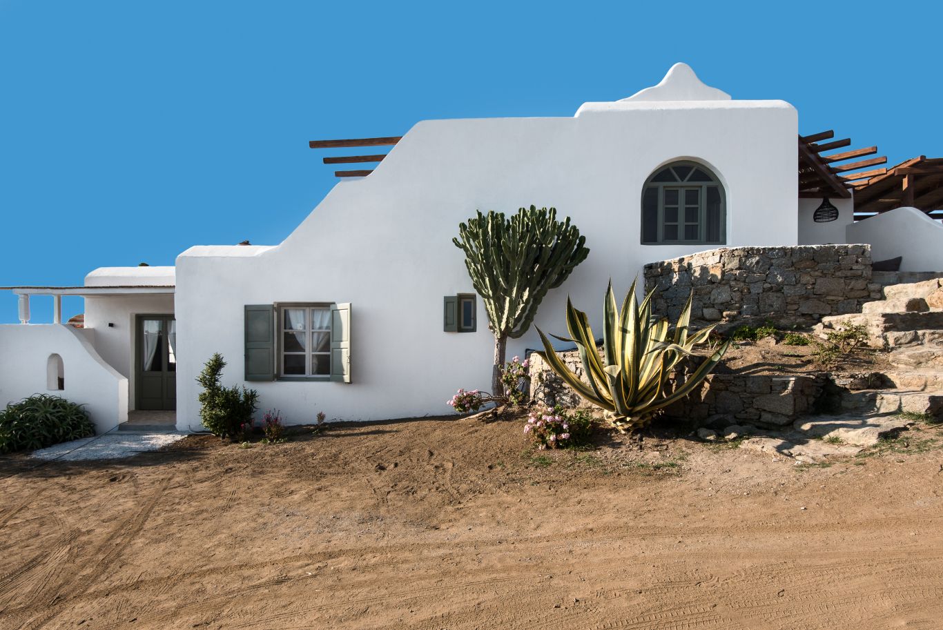 Located in Mikonos, Laggatha Resort is very central and easy to access . Its accommodations are located in the heart of a beautiful agricultural zone, with a view to the sea, and only 15 minutes walking distance from town on small roads. It’s also ideally located within 2 miles of some of the most famous beaches (Nammos 1.7 miles, Skorpios 1.8 miles)